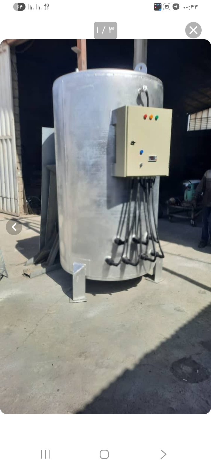 ابعاد مخزن ۵۰۰ لیتری قطر 66 سانتیمتر ارتفاع مخزن150 سانتیمتر ارتفاع کل با پایه 175سانتیمتر
